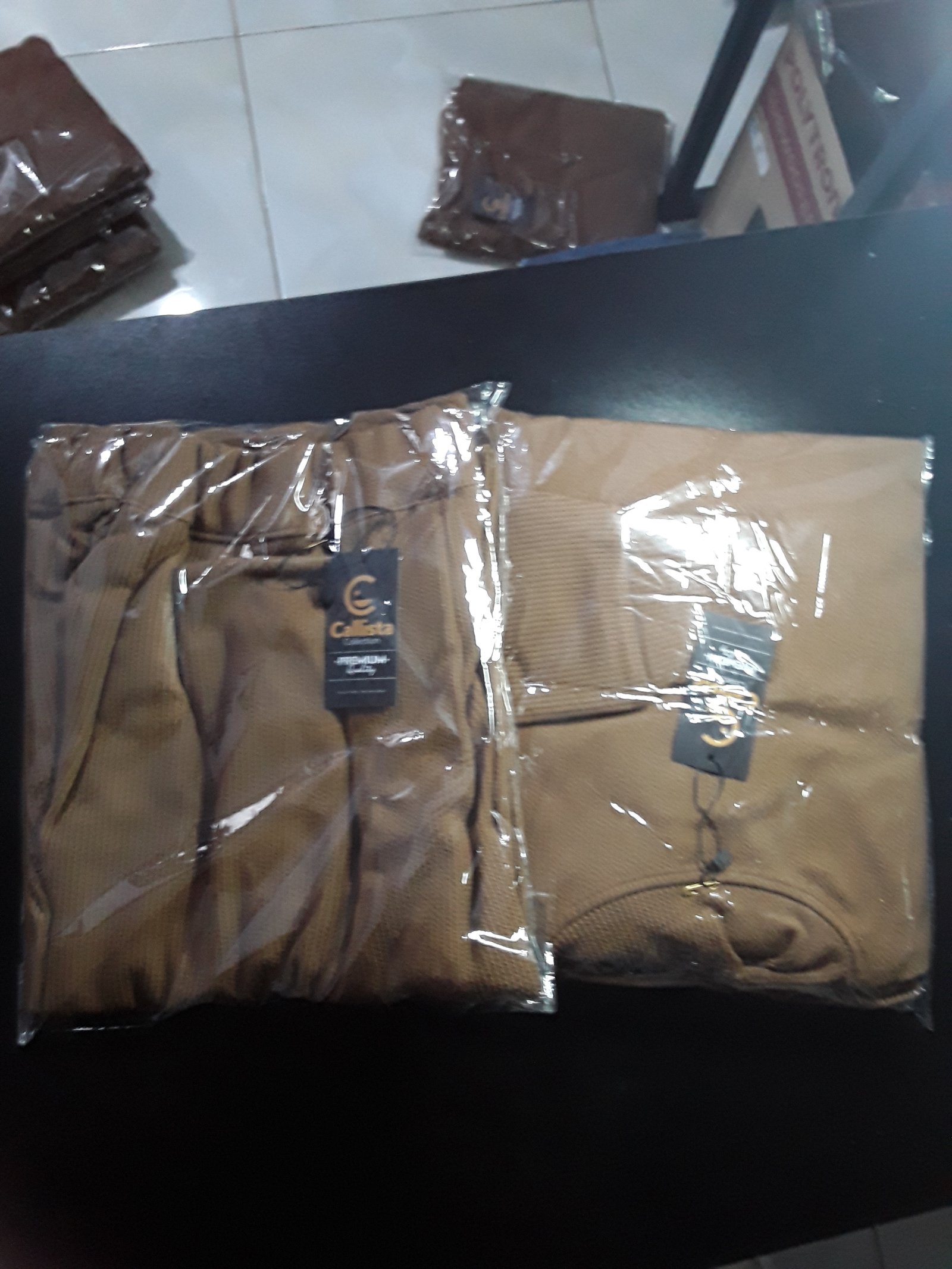Variant : Warna Coklat Stelan baju celana rajut polos Harga : Rp. 16,- |